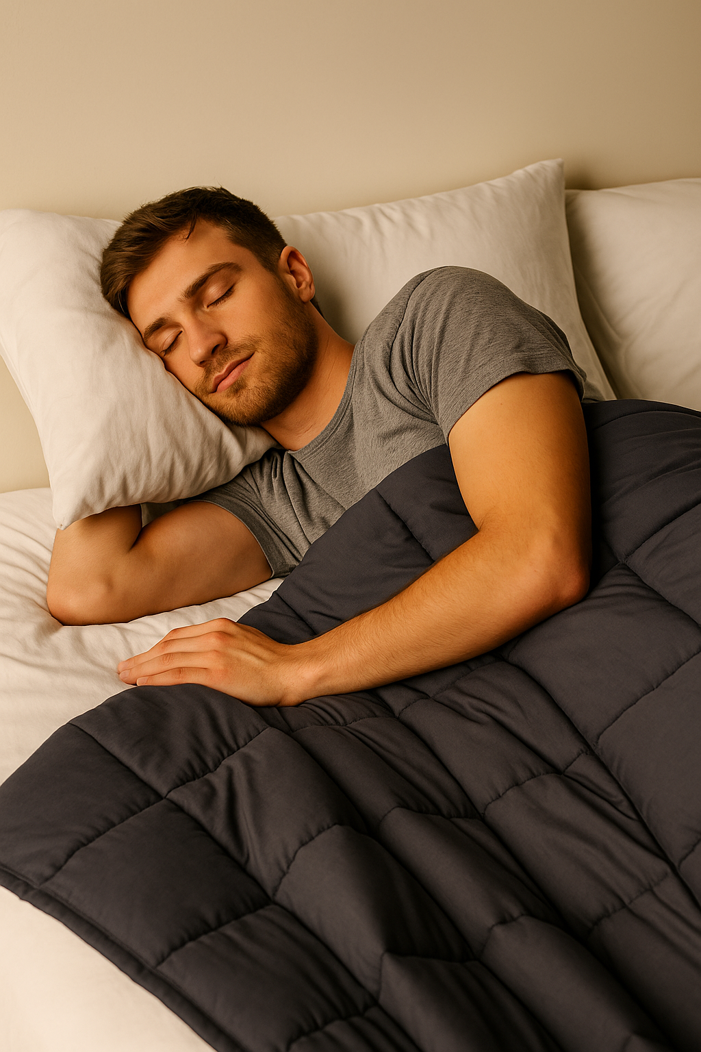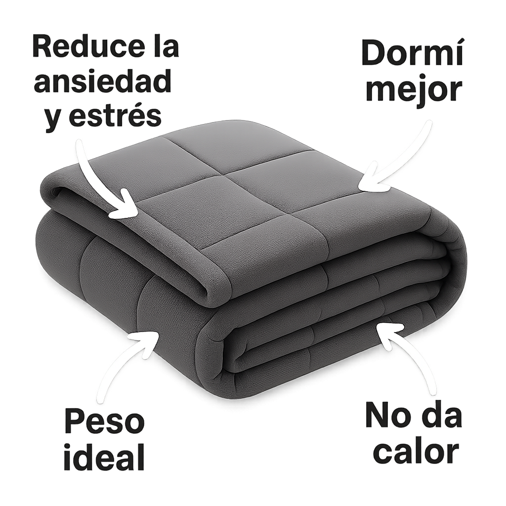 Sentís cómo el peso te envuelve, como un abrazo cálido y seguro. Tu cuerpo se relaja. Tu mente se apaga. Y por primera vez en mucho tiempo... dormís profundo.